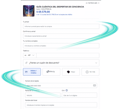 Diligencia tus datos de pago en la pasarela de Hotmart.